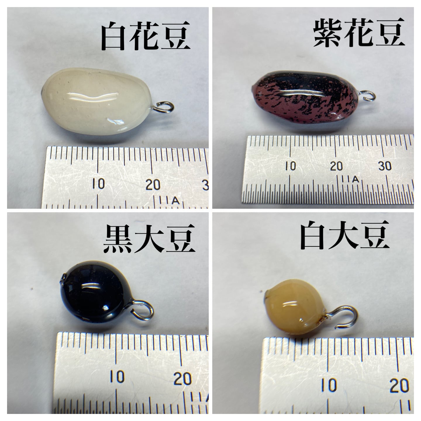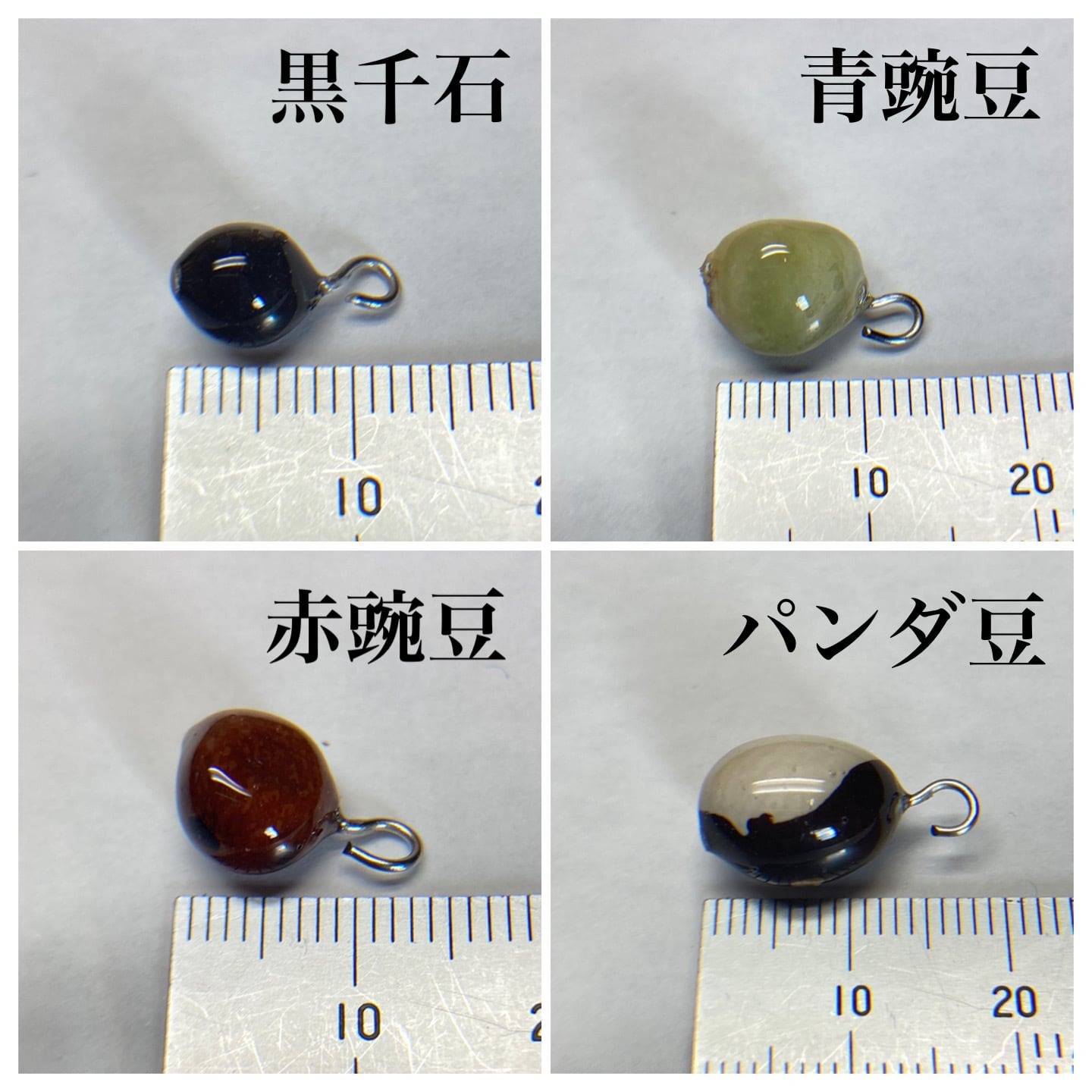 同じ商品でも豆の大小、色、形、レジンのノリ全て異なります。